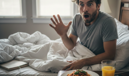“Did you forget to clean your bed again? Stuffed animals, comic books everywhere—no wonder there’s no room.”