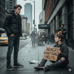 A rich teenager froze the moment he saw a homeless boy with his identical face — the thought that he could have a…