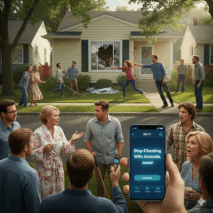 When a suburban neighborhood wakes up to a WiFi network named “Stop Cheating With Amanda, Jason,” Maplewood Lane turns into a live-action soap…