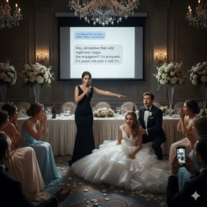I. The Cake Crash The knife was cold in my hand, the silver handle slippery against my palm. The ballroom lights glittered off…