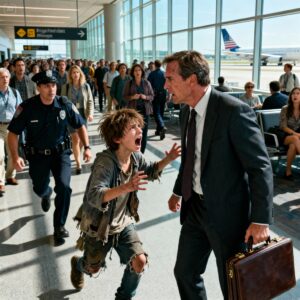 “Don’t get on the plane! It’s about to explode!” – A homeless boy yelled at a rich businessman, and it saved his life……