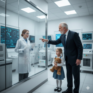 The wealthy man brought his daughter to the lab for a special test. Not a hospital.Not a clinic. A private underground research facility—glass…