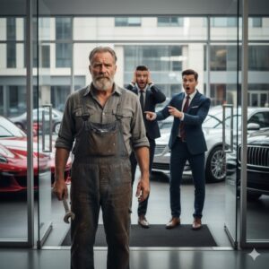 Poor Mechanic Laughed At By Car Dealer — But Everyone Froze When The Manager Walked In And Called Him “Dad” The smell of…