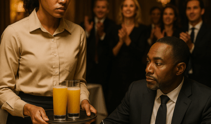The banquet hall smelled like starch and nostalgia. Veterans in dress blues and polished shoes filled the rows; families whispered over coffee in foam cups. A banner hung crooked over the stage: “Heroes Among Us.”