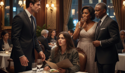 Harrison stared at her, his expression shifting from cold contempt to sheer horror.