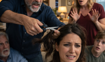 Sophie stared at the dark strands on the floor in disbelief, then touched the jagged edge near her neck and burst into tears. Caleb dropped the hair and said, almost laughing, “Maybe now you’ll stop acting like you belong on a billboard.”