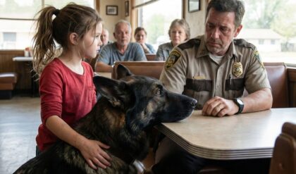 His eyes glistened, and the diner grew painfully still. Emily’s expression softened. Even at her age, she understood the weight of a parent’s fear. She took a tiny step closer. Shadow did too.