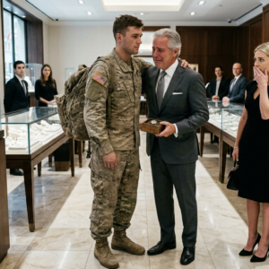 Sarah’s demeanor flipped instantly. She flashed a practiced smile, her voice turning sweet. “Oh, Mr. Winston. I’m so sorry for the noise. This… this soldier was harassing me. I was just teaching him a lesson.”
