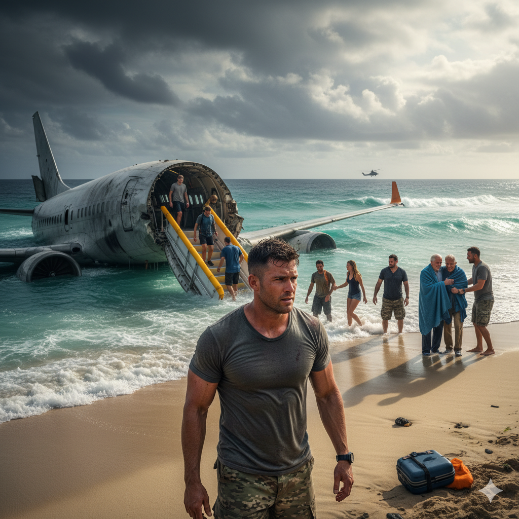 He was the last person to exit the sinking plane. Once on the beach, he started counting. He saw the elderly man he had shielded was safe. He found his “support team” assisting the walking wounded.