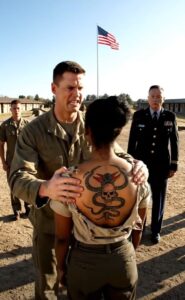 By the time hand-to-hand combat arrived, the mask of invisibility was at its limit. Lance Morrison, six feet of muscle and arrogance, saw a target he assumed was weak. He charged, a violation before the whistle blew, slamming me against the wall. The torn t-shirt revealed the symbol inked across my back—a coiled viper entwined around a shattered human skull. Silence fell like a weight. Colonel James Patterson, steel-haired and battle-hardened, froze. Recognition etched across his face, trembling hands coming to a salute. Ghost Viper, myth incarnate, had chosen me as his final student. The legend was real, and it stared them down in the form of a tattoo, black ink that spoke louder than words.